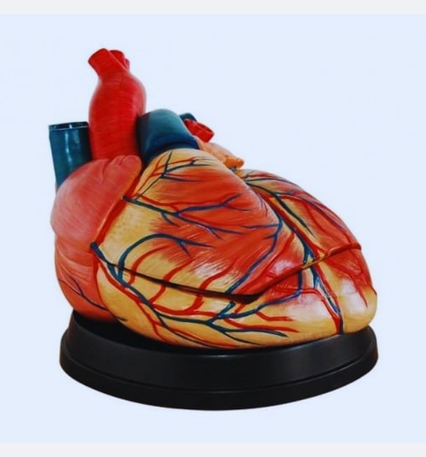 This model helps the students to understand the external features and internal structures of the heart, and its relation with the large blood vessels. Thus a clearer conception of the routes of the systemic and pulmonary circulation can be obtained. Dissectible into 3 parts, 4 times enlarged. It is made of PVC plastic and mounted on a base.