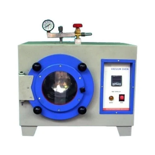 The outer case is made of mild steel duty power coated / stainless steel and inside chamber made of stainless steel 304. Insulation between the two walls are filled with glass wool Heating elements produce gentle heat throughout the chamber. Temperature controlled through microprocessor digital temperature controller cum indicator. It has two valves one for achieving vacuum 760hg/mm and other of feeding any inert gas or else The door of the oven is made of stainless steel 304/M.S. with glass window. Without vacuum pump to work on 220/230 volt 50Hz.